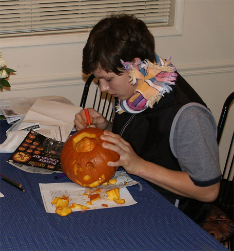 Carving a pumpkin