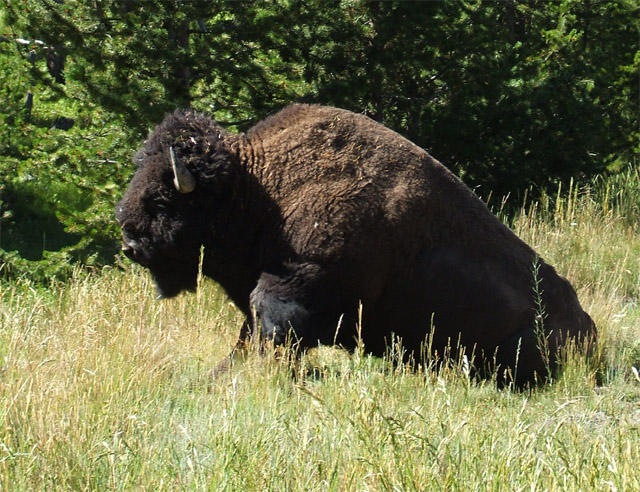 Buffalo rising from knees