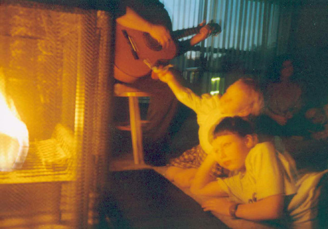 By fireplace